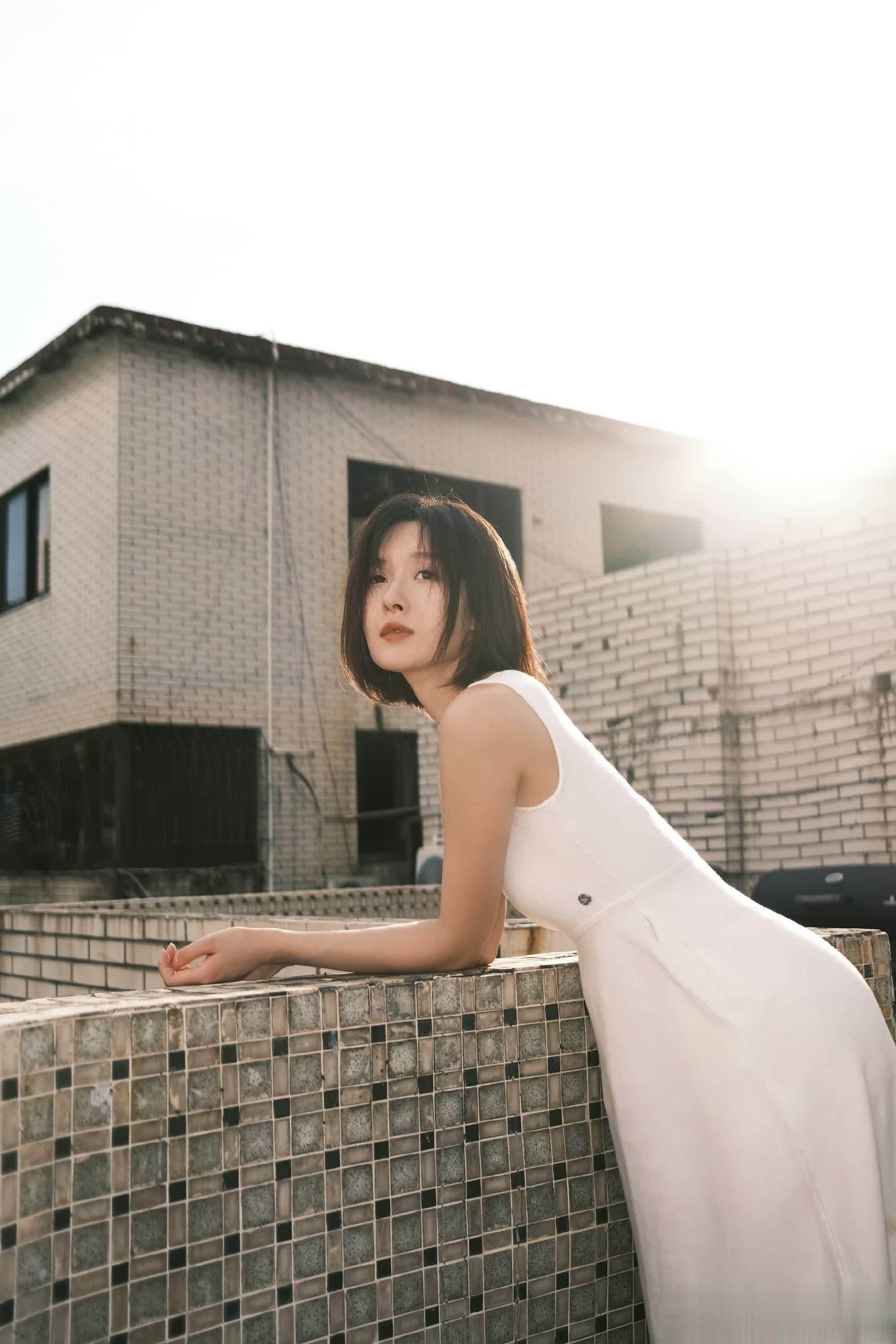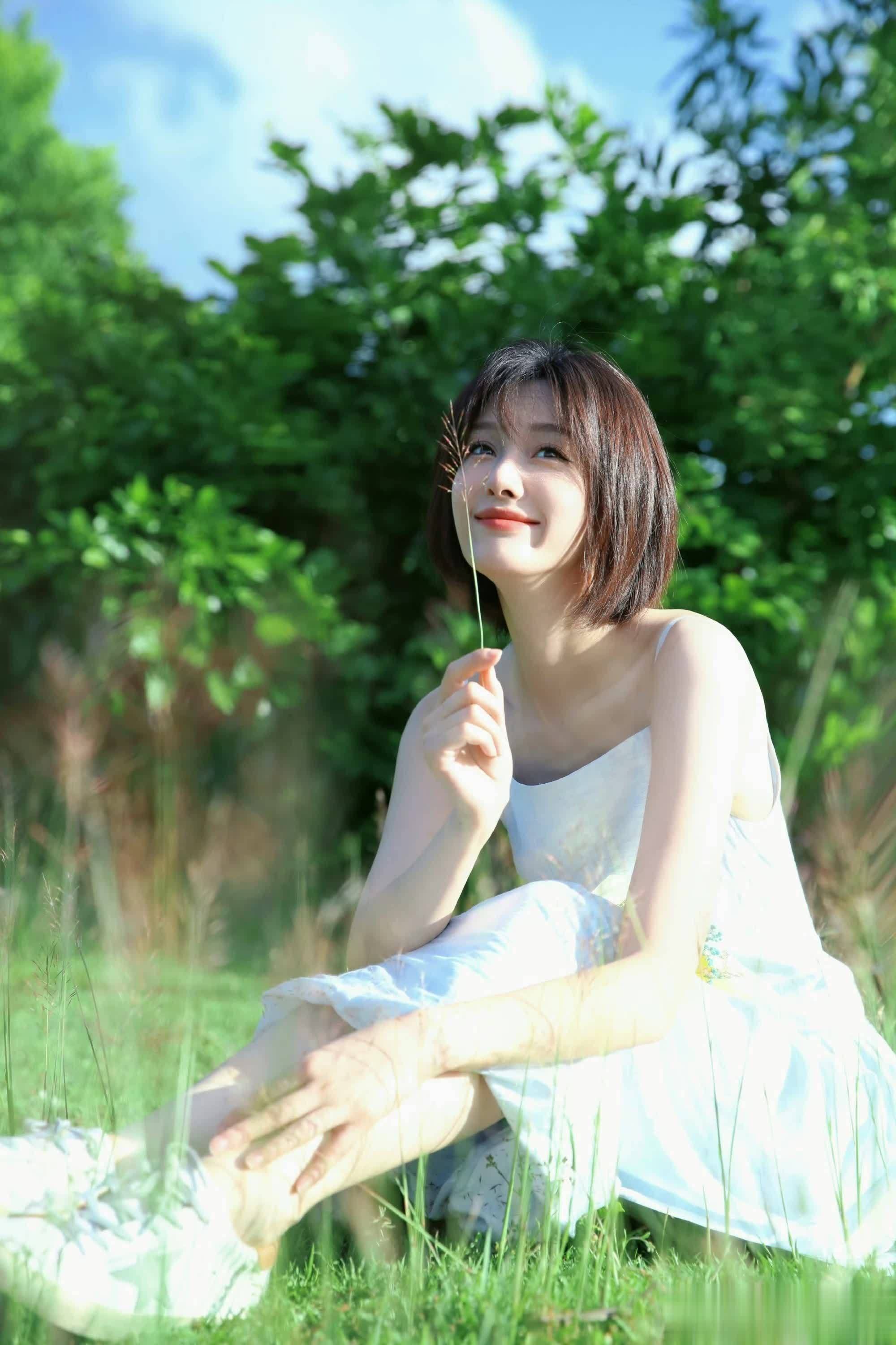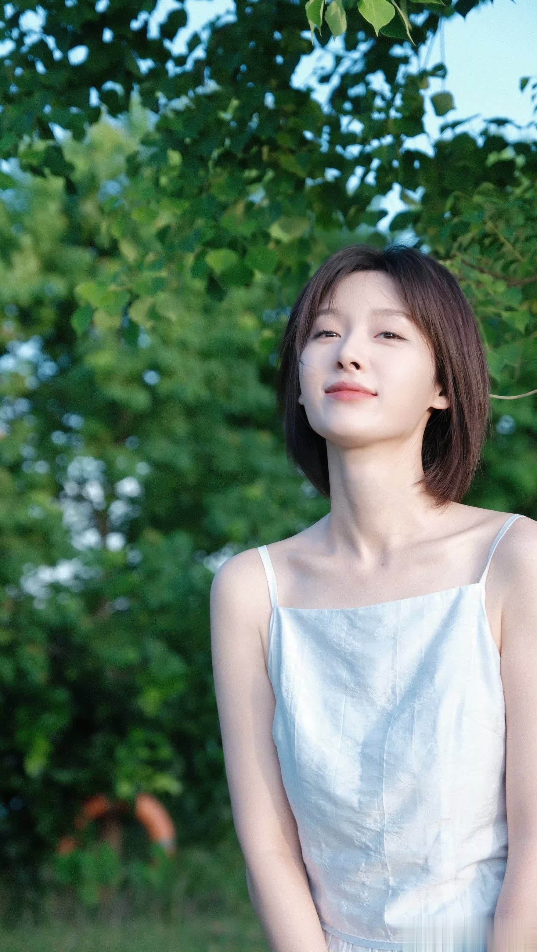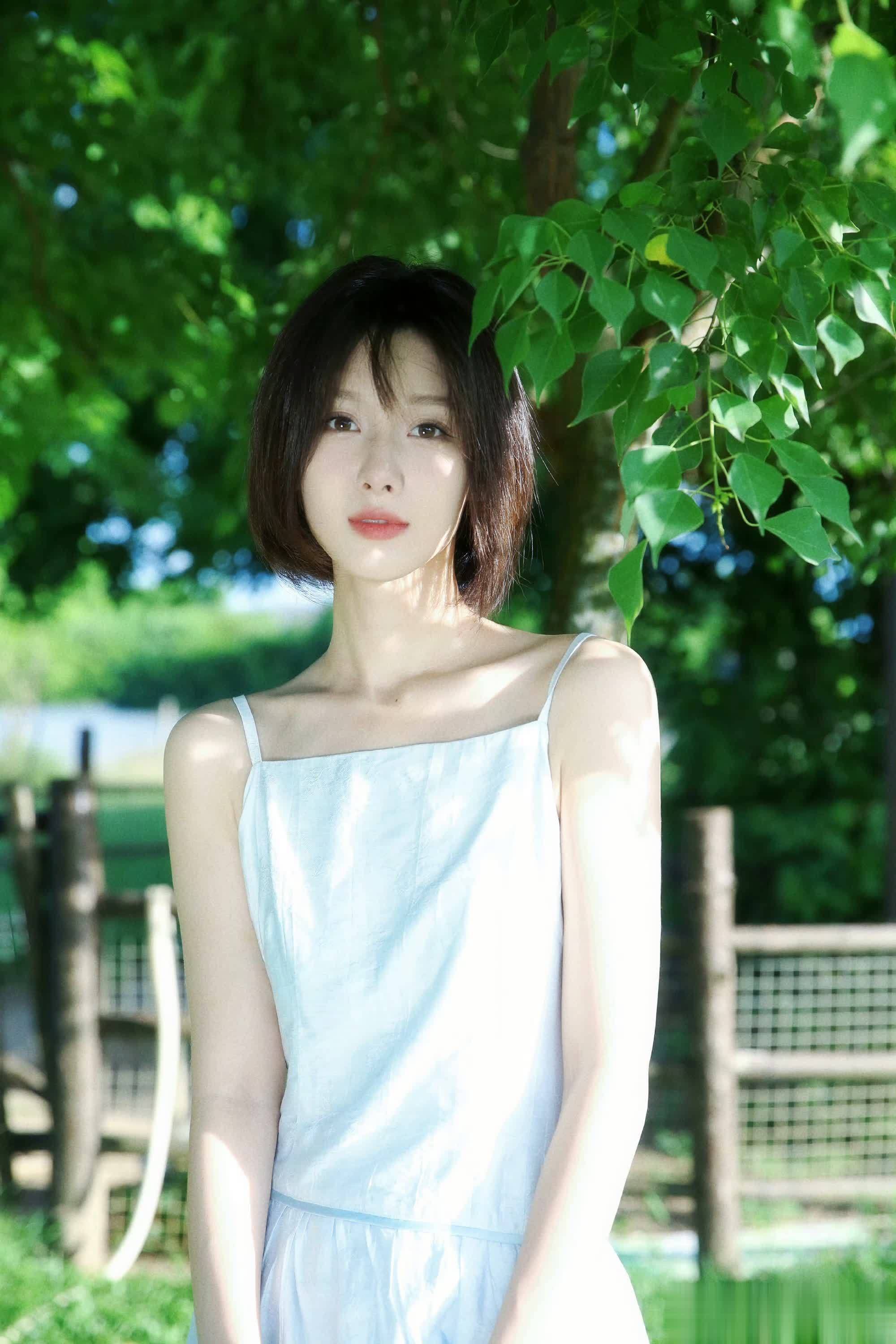 王子璇白裙造型在绿意间摇曳,一眼心动超浪漫!
