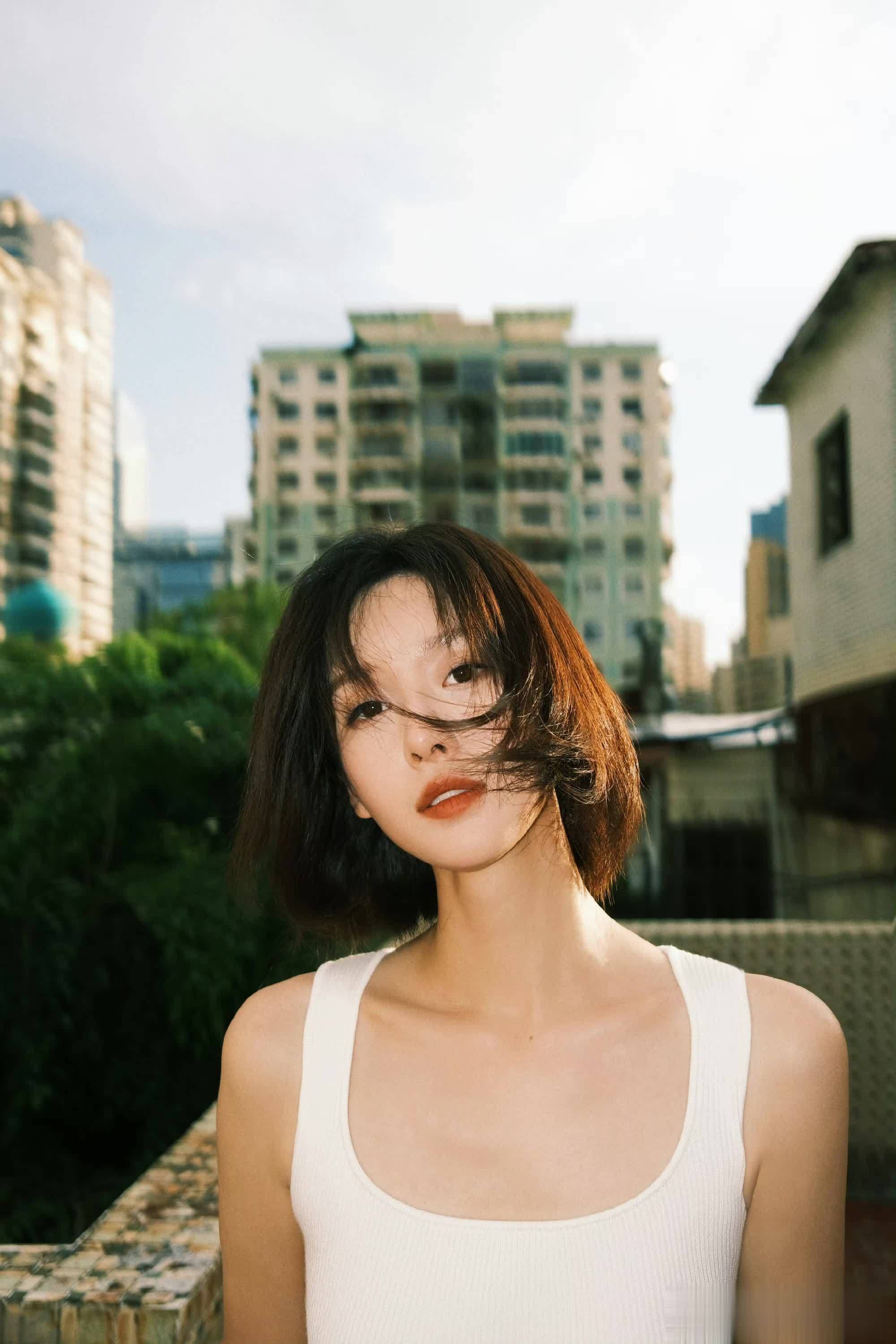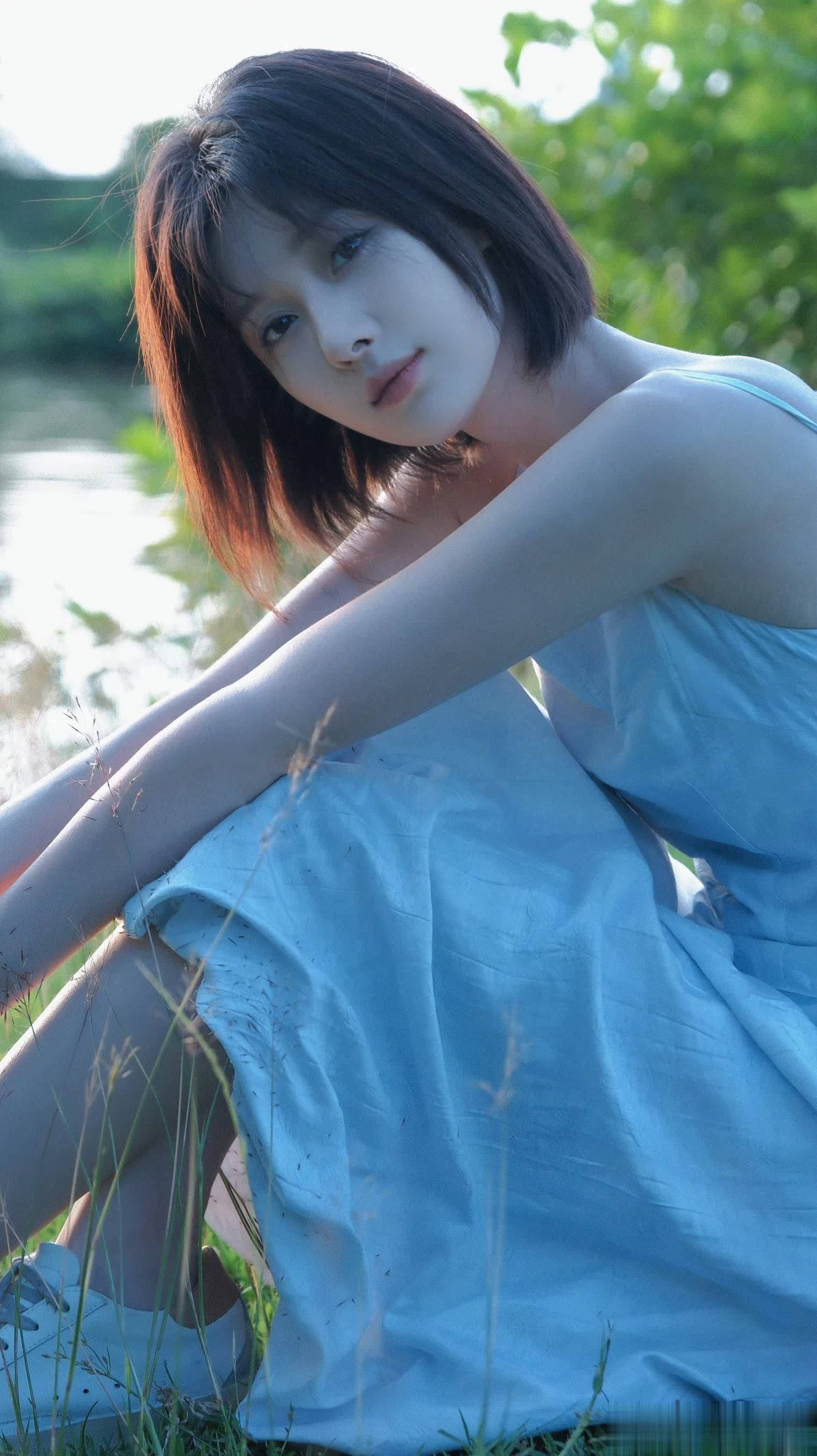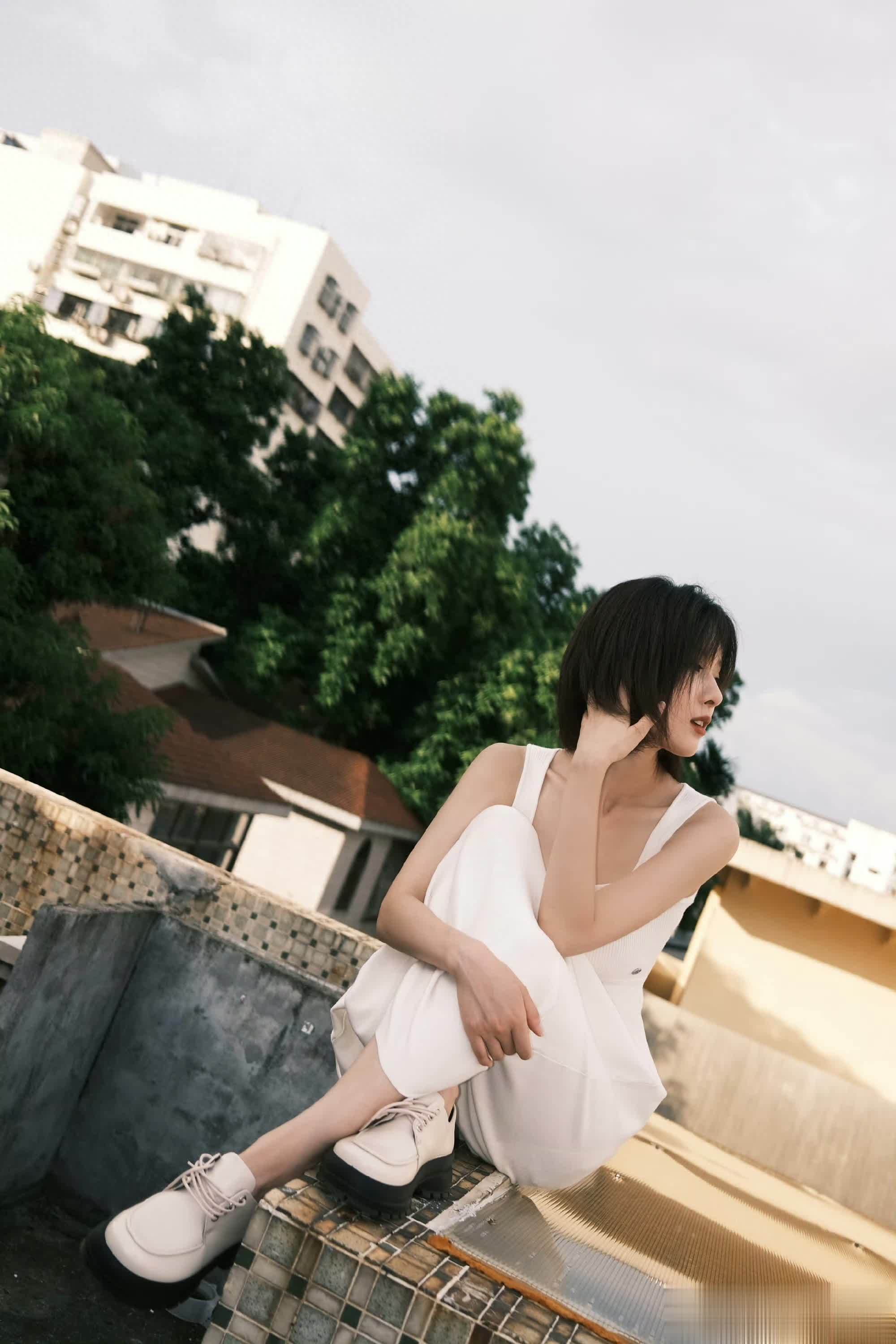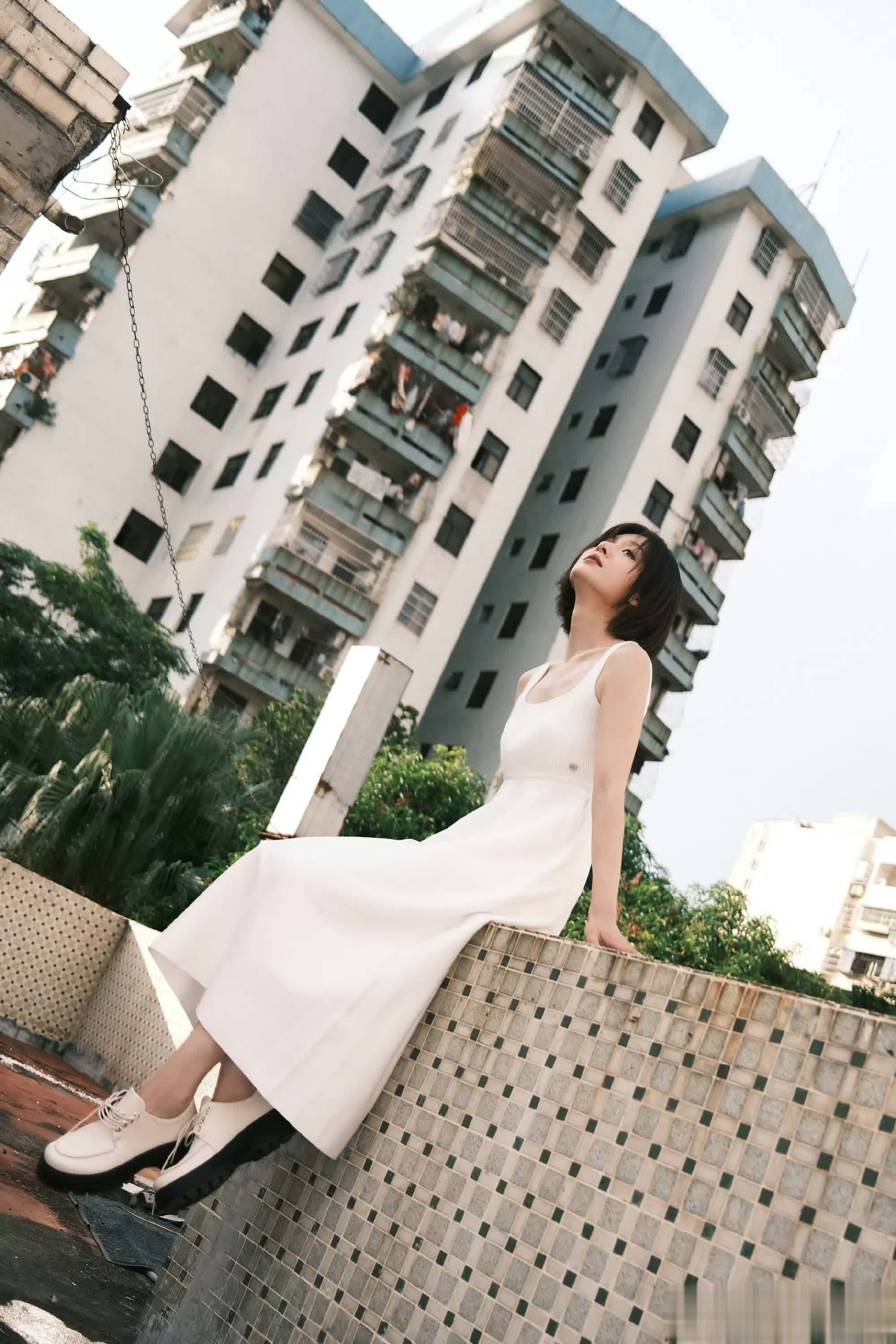 王子璇白裙造型在绿意间摇曳,一眼心动超浪漫!